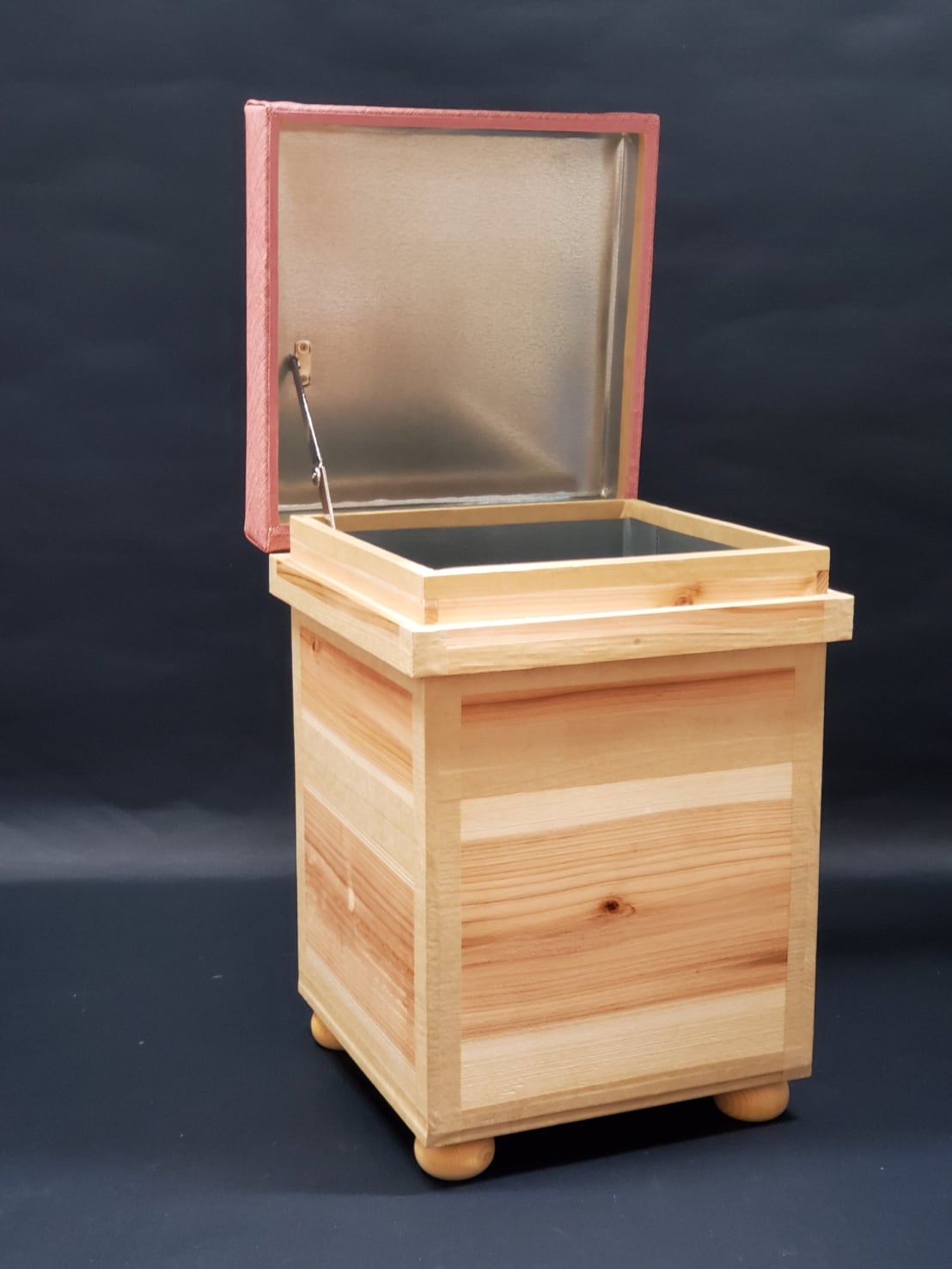 食事をしたり、お茶を飲んだり、ちゃんと休めるように蓋にウレタンを付け布を張りました。