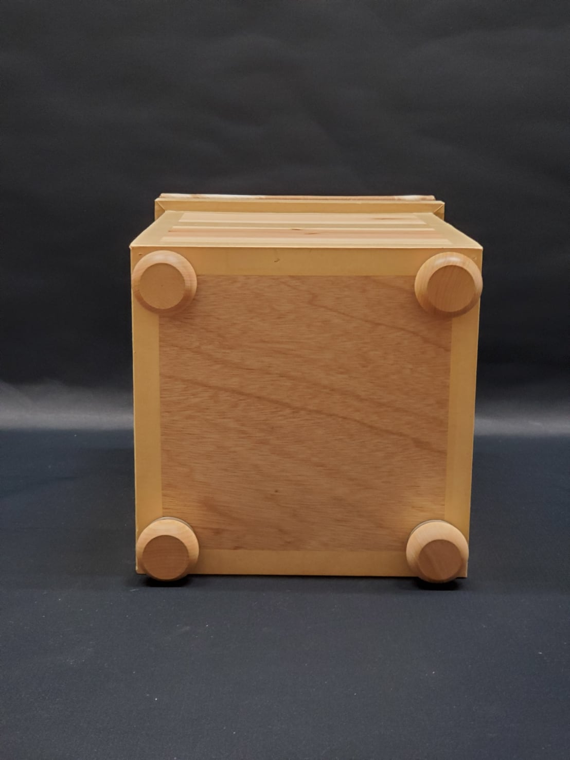 本来座るための用途として作られていない茶箱を正方形にすることで、荷重に耐えられる構造になり、椅子として利用することができる茶箱です。