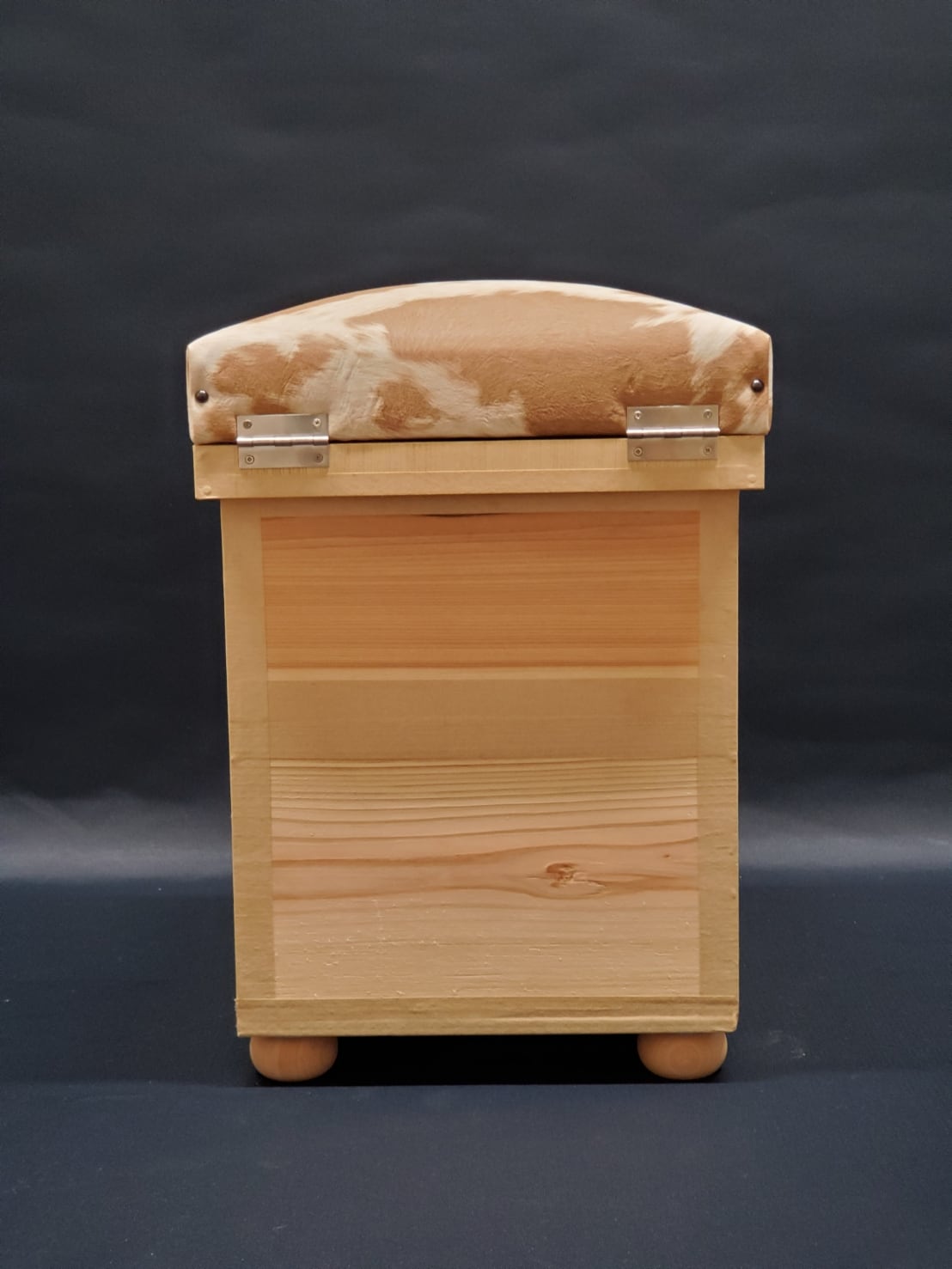 食事をしたり、お茶を飲んだり、ちゃんと休めるように蓋にウレタンを付け布を張りました。